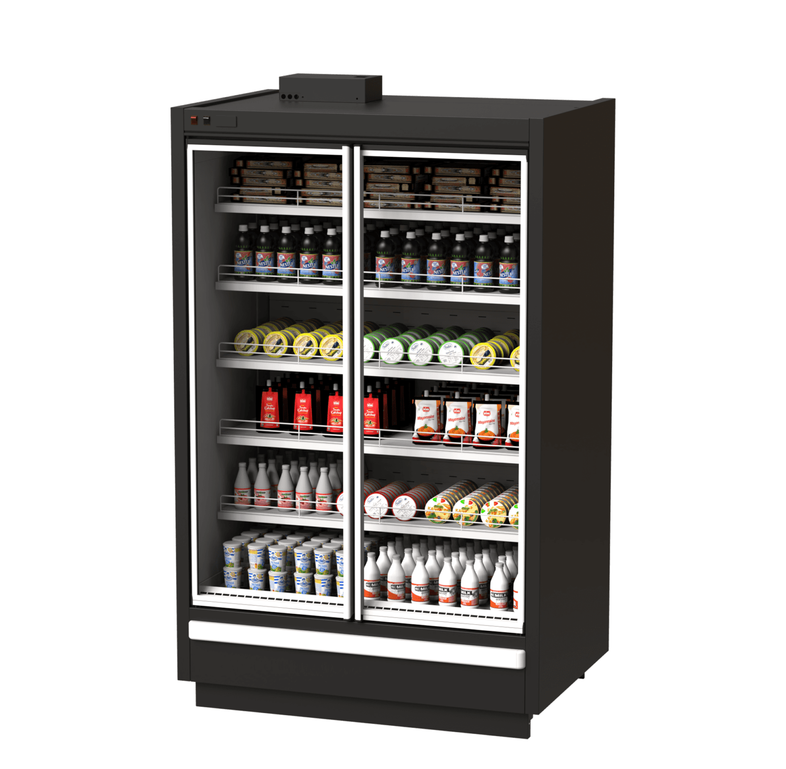 Среднетемпературная горка "ПРАГА 1250"<br>с дверями и с выносным агрегатом<br>(без агрегата)<br>(без боковин)